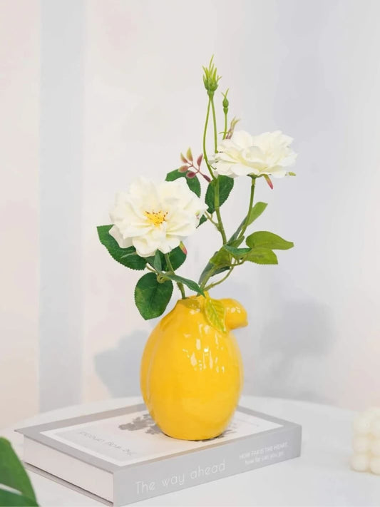 Au-delà de son aspect décoratif, le vase citron peut bien sûr accueillir des fleurs fraîches ou séchées. On privilégiera des variétés simples : fleurs blanches, feuillage vert, ou quelques brins d’herbes aromatiques pour renforcer l’esprit méditerranéen.