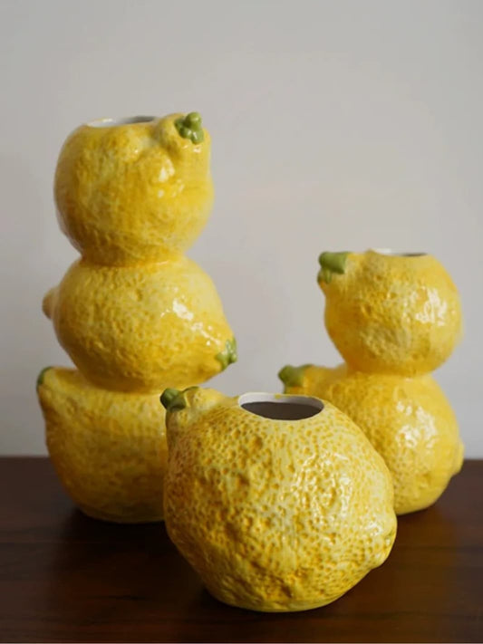 Un vase citron peut adopter plusieurs styles : réaliste avec un effet peau texturée, stylisé façon pop art, ou encore plus discret avec de petits motifs d’agrumes. Chaque version a un charme particulier, entre humour, art et déco tendance. Il devient un vrai sujet de conversation à lui seul.