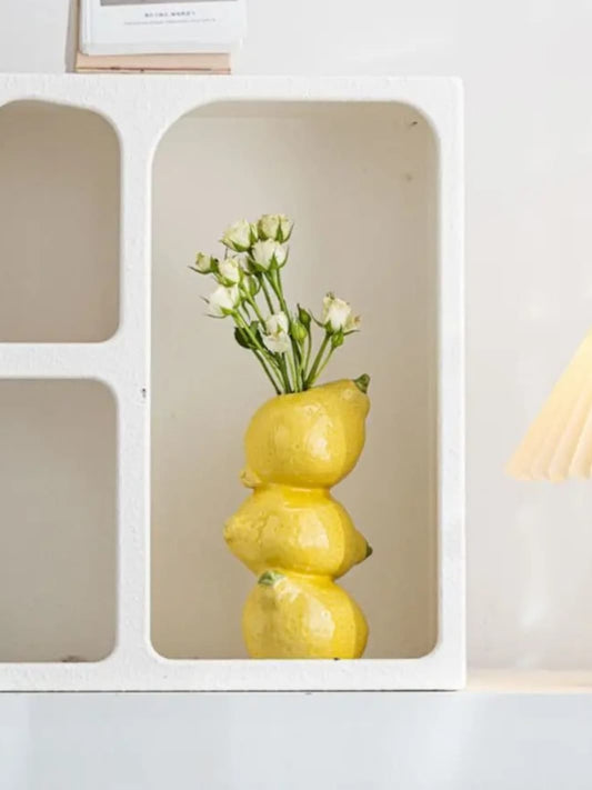 Le vase citron évoque immédiatement les vacances, le soleil, et les boissons glacées. Sa forme ronde et sa teinte jaune éclatante attirent l’œil et mettent de bonne humeur. C’est un objet déco parfait pour égayer un coin de cuisine, une table de salon ou une étagère blanche.