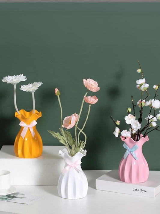 Un vase coloré peut être en verre teinté, en céramique peinte, en porcelaine émaillée ou en plastique design. Chaque matériau offre une texture et une lumière différente. Le verre apporte de la transparence, la céramique donne de la profondeur, et le plastique permet toutes les folies de formes. Ce sont des objets libres, sans codes figés.