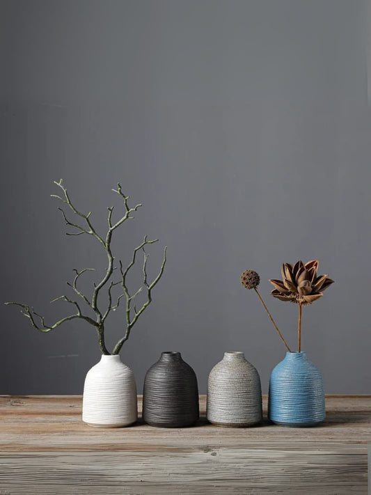 Vase | Petit vase nervuré noir style japonais