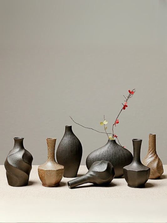 Ces associations permettent de créer un univers cohérent et dynamique autour du vase.