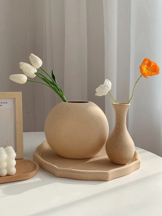 Le vase rond séduit par sa géométrie parfaite. Cette forme symbolise l’harmonie et l’unité, ce qui en fait un choix naturel pour ceux qui cherchent une ambiance calme et équilibrée chez eux.