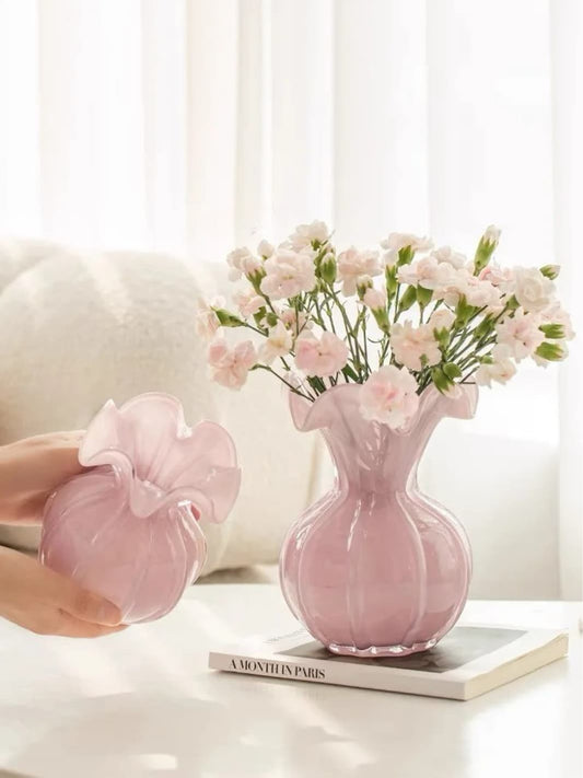 Le vase rose se marie très bien avec des fleurs blanches, violettes ou orangées. Il est superbe en solo sur une étagère blanche ou en composition avec d’autres vases colorés. Dans une chambre, il apporte une ambiance douce et enveloppante. Dans une pièce à vivre, il donne un ton poétique et accessible. Il peut aussi créer un joli contraste avec des matériaux comme le métal noir ou le bois brut.
