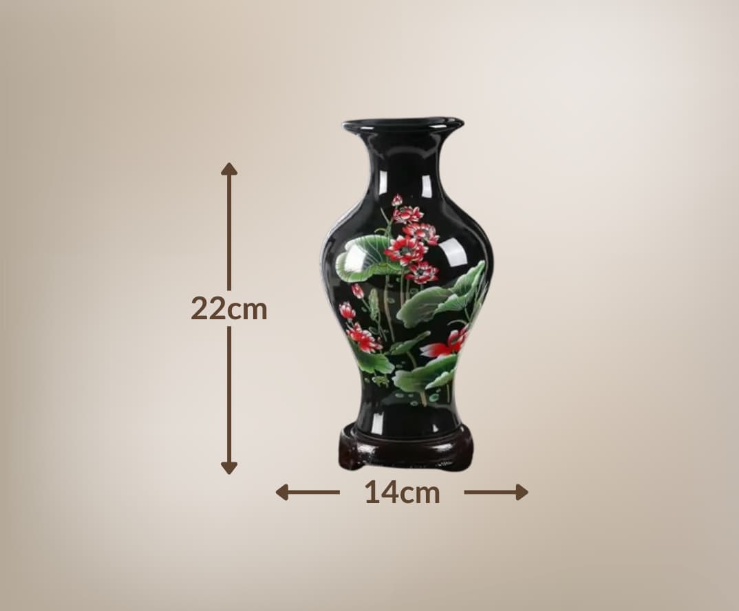 Metamorphosez votre intérieur avec cet objet décoratif au long col noir émaillé et aux fleurs rouges éclatantes. Laissez ce chef-d'œuvre floral apporter élégance et charme à votre espace de vie.