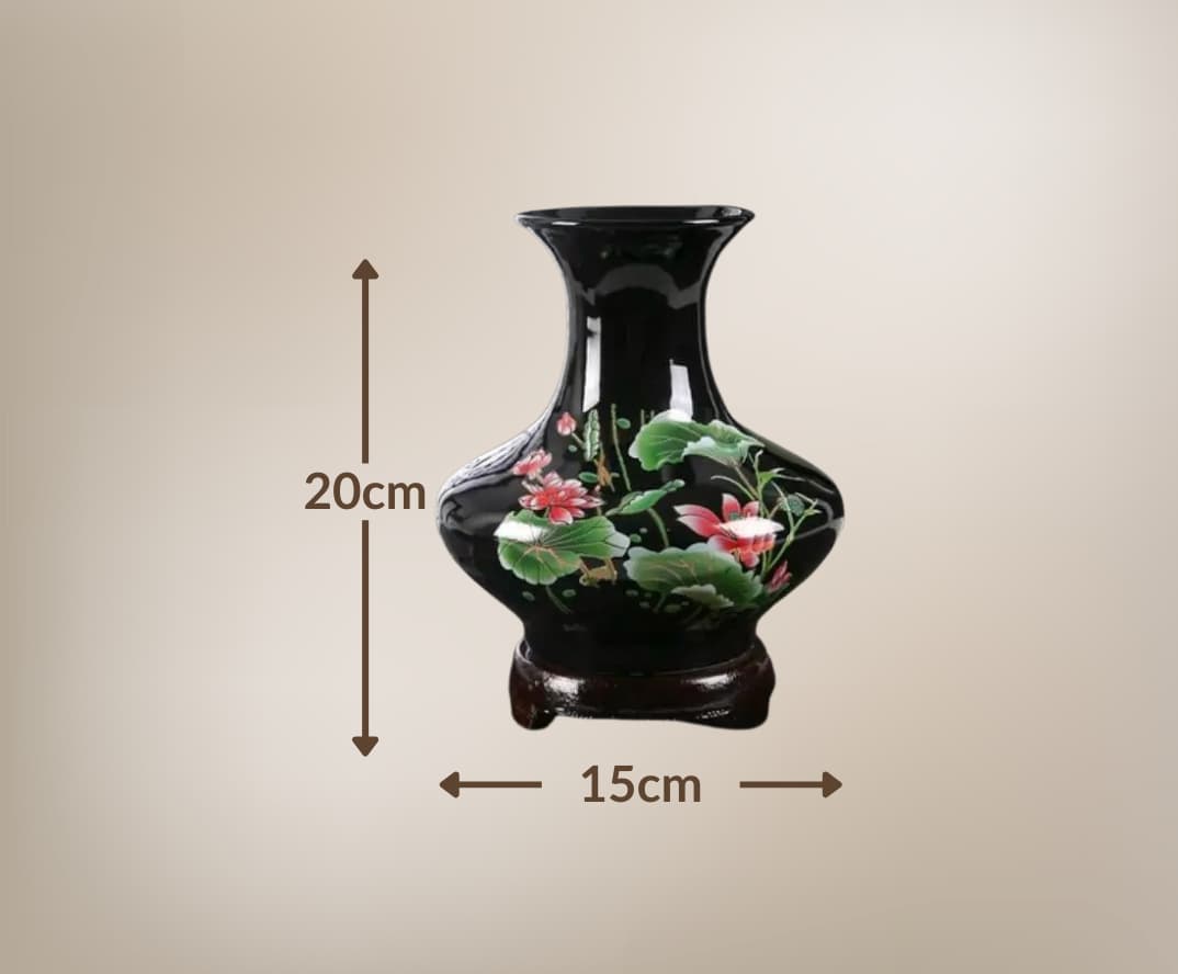 Avec ses délicates fleurs de lotus sur porcelaine noire brillante, ce vase est une véritable oeuvre d'art qui illuminera votre intérieur. Offrez-vous un objet d'exception et ajoutez une touche de luxe à votre décoration.